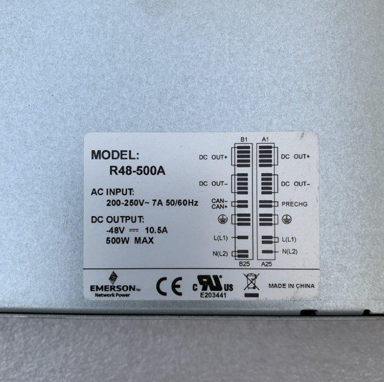 艾默生整流模块(R48-500A)176Vac~300Vac输入,模块输出功率为96%额定功率,即500W。90Vac~176Vac输入,模块输出采用线性限功率
