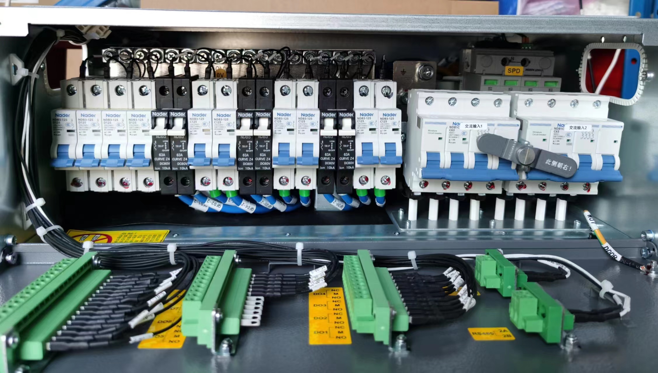 2. 单路交流输入、有用户交流输出空开;