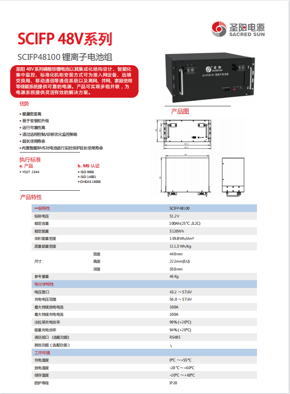 圣阳磷酸铁锂蓄电池SCIFP48100