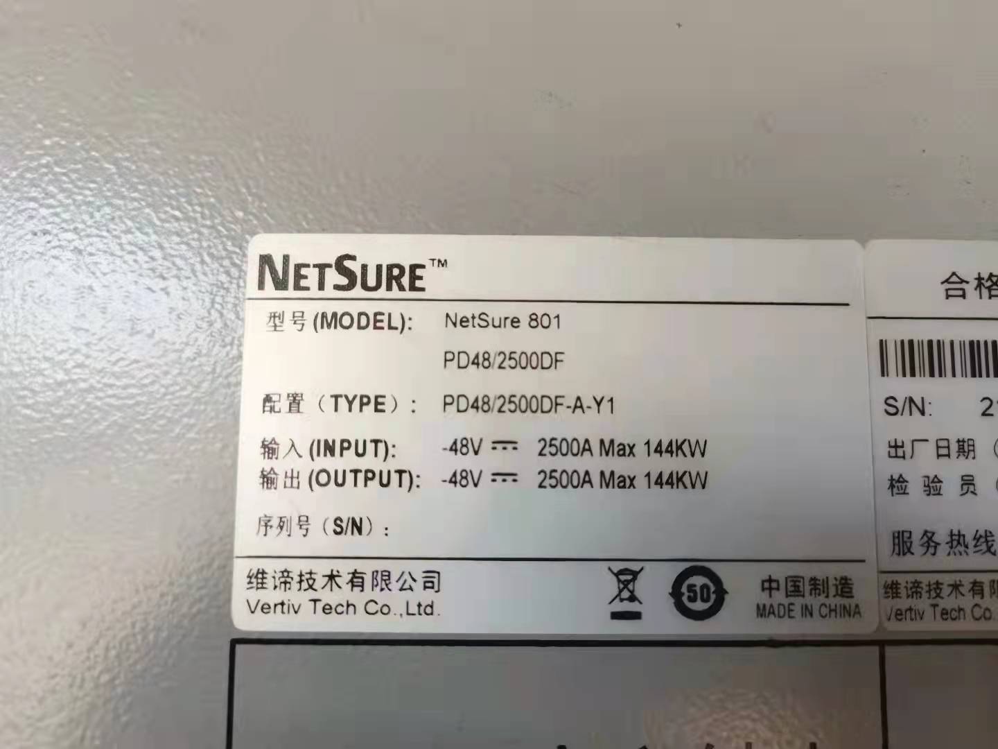 艾默生室内直流电源柜NetSure 801PD48/2500DF